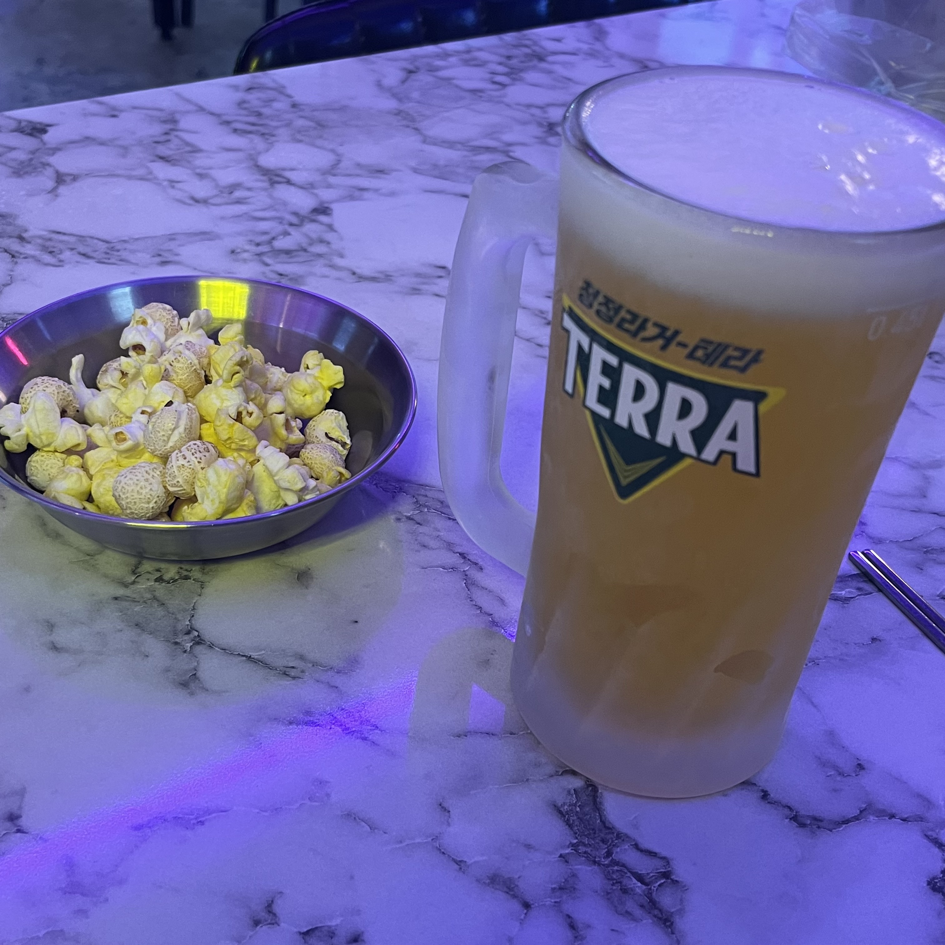 뻥튀기와 팝콘이 함께 나와 가볍게 입을 달래며 술을 시작할 수 있어 좋고,